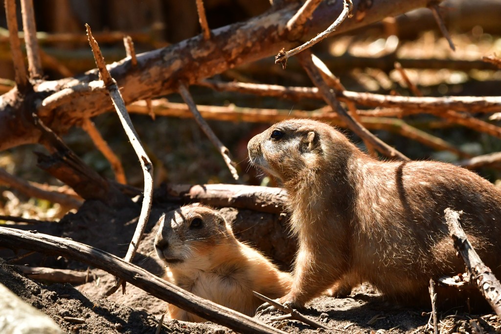 Prairie Dogs are burrowing rodents native to the grasslands of North America. Living in large colonies known as “towns,” they have a complex system of tunnels with designated areas for nurseries, sleeping, and waste. Prairie Dogs are highly social and communicate with a sophisticated system of vocalizations to alert others of predators.